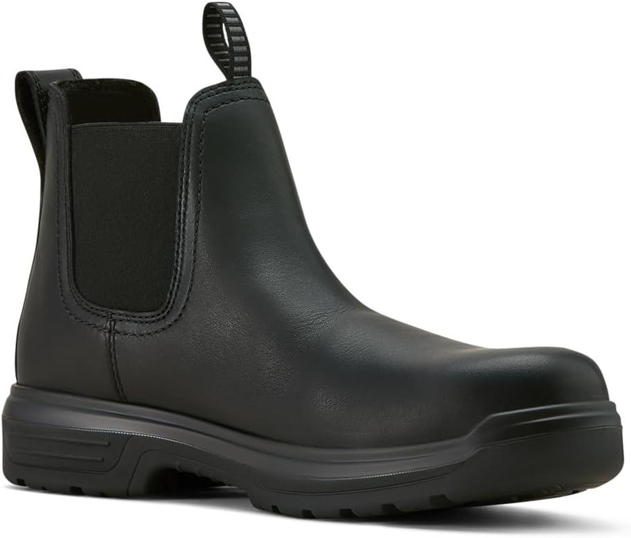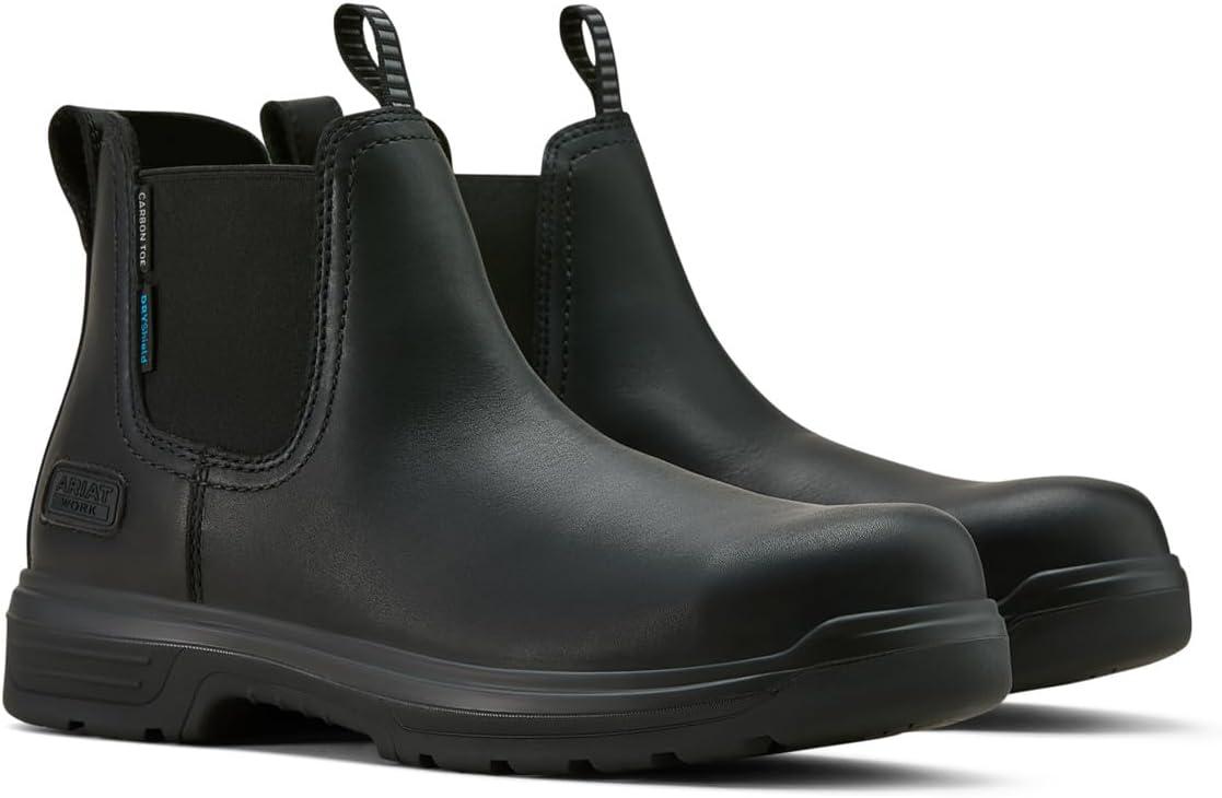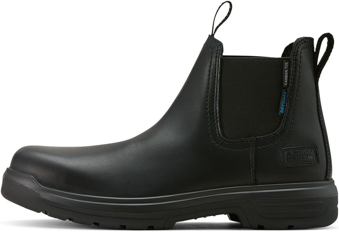 *Turbocharge your workday with the all-day comfort of this supportive men's Ariat® work boot *Waterproof full-grain leather upper *Waterproof Pro™ construction *ATS® technology for stability and comfort *6″ shaft height *Easy pull-on styling with twin gore for easy on/off *Rebound foam insole *Oil- and slip-resistant dual-density PU/TPU sole *Composite safety toe is rated ASTM F2413-17 M I/75 C/75 EH