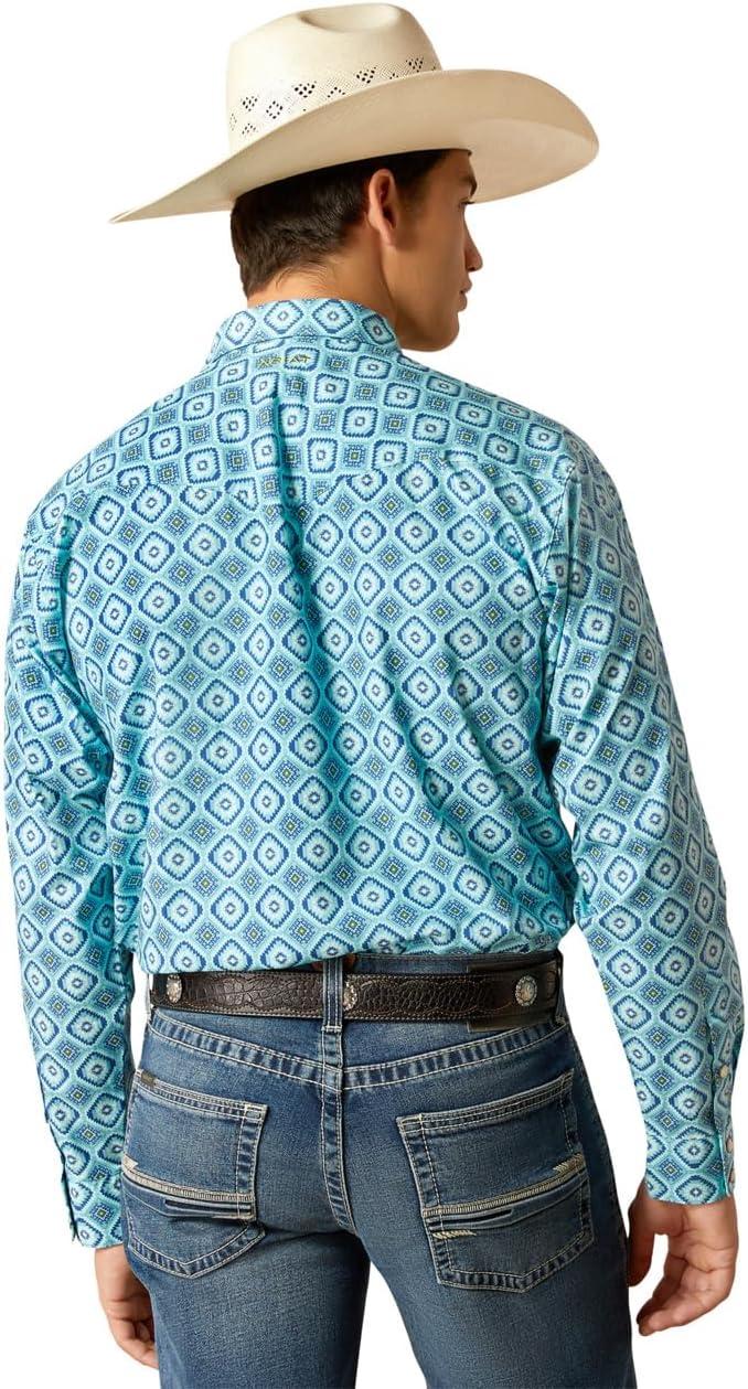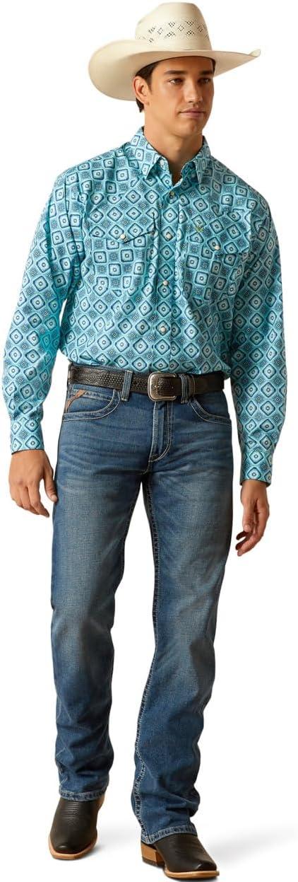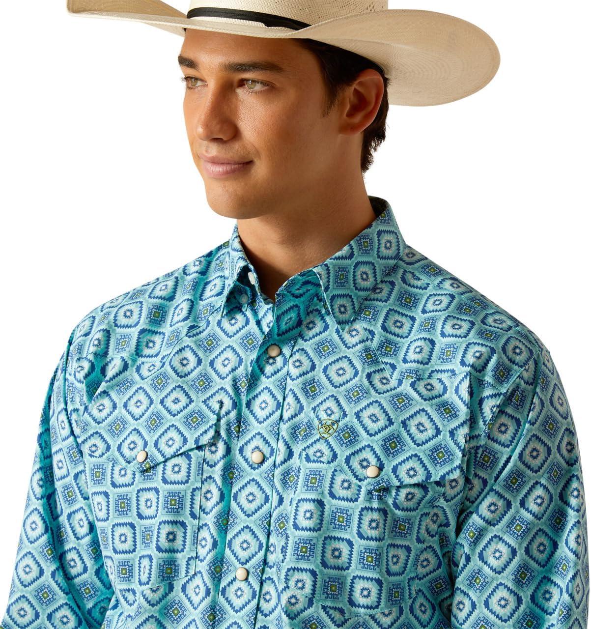ARIAT Turquoise Aztec Print Pearson Men’s Classic Fit Longsleeve Snap Front Collared Shirt 10048500(Turquoise)