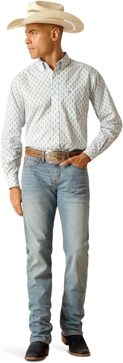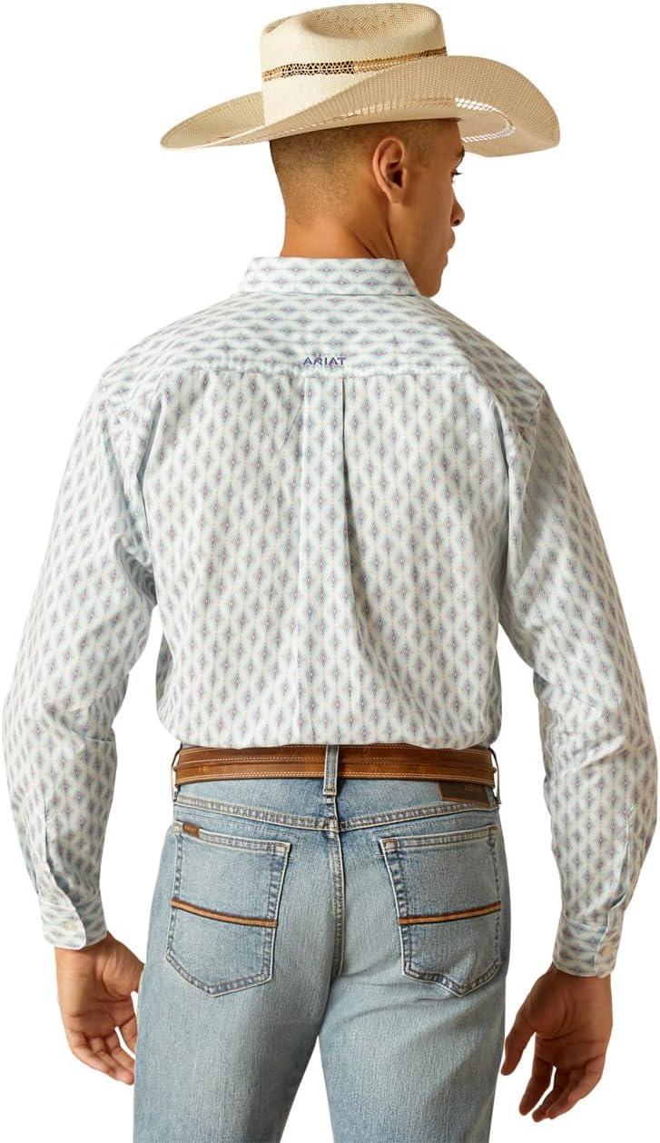 ARIAT White Kendrick Mens Fitted Long Sleeve Button Down Western Shirt 10048409(White)