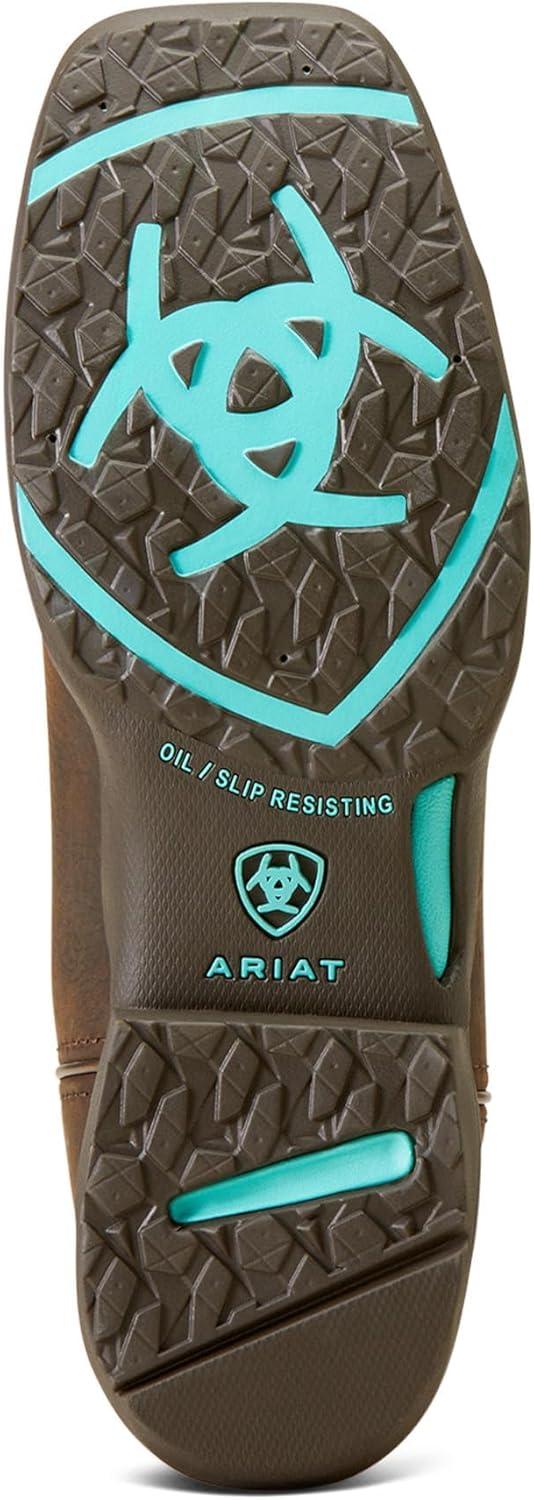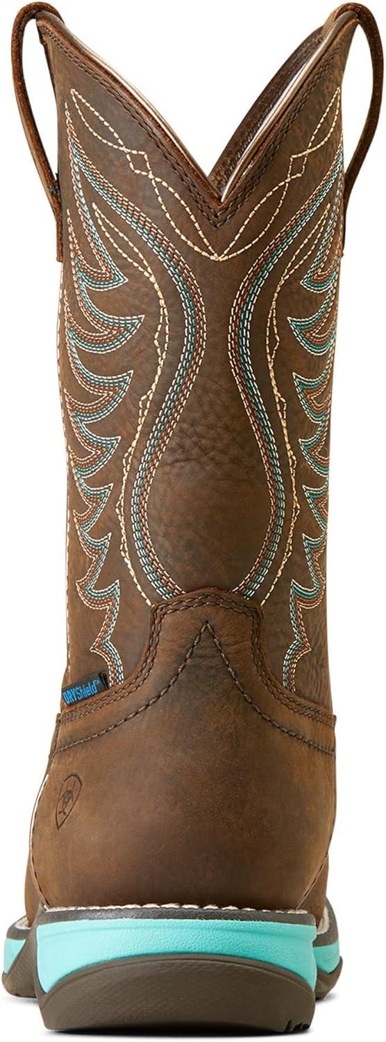The Ariat Women’s Anthem Waterproof Western Boot is easy to slip on when the forecast calls for wet weather. Lightweight and shock absorbing, they keep your feet dry, comfortable, and supported whether you’re feeding animals, mounting up, or heading into town. The DRYShield waterproof-breathable construction with full-grain leathers and an impermeable barrier delivers trusted durability and dry feet. Engineered for lasting comfort and durability, it features a 4LR technology that provides lightweight support and stability and a removable comfort insole and EVA midsole. The Duratread sole is extremely durable while still letting your foot flex. The cowboy boots for women are crafted from a waterproof full grain leather foot and upper, double stitch welt, and mesh lining that combines rugged style with breathability. The 10” shaft height with embroidered stitch pattern, 1.5” Horseman heel height, and square toe create a functional fit for work and everyday wear. Conquer your day with the unmatched comfort and rugged durability of these western boots for women.