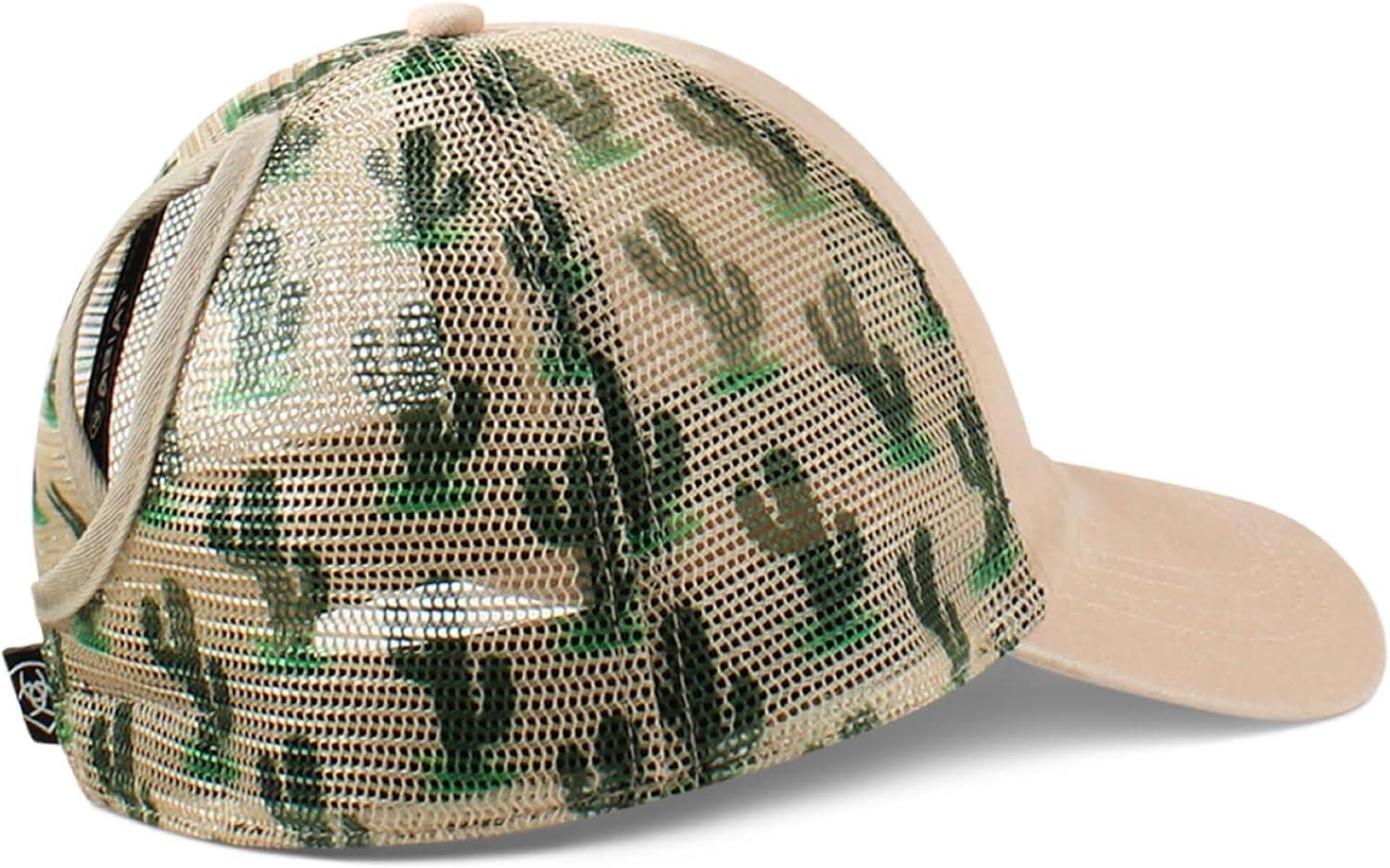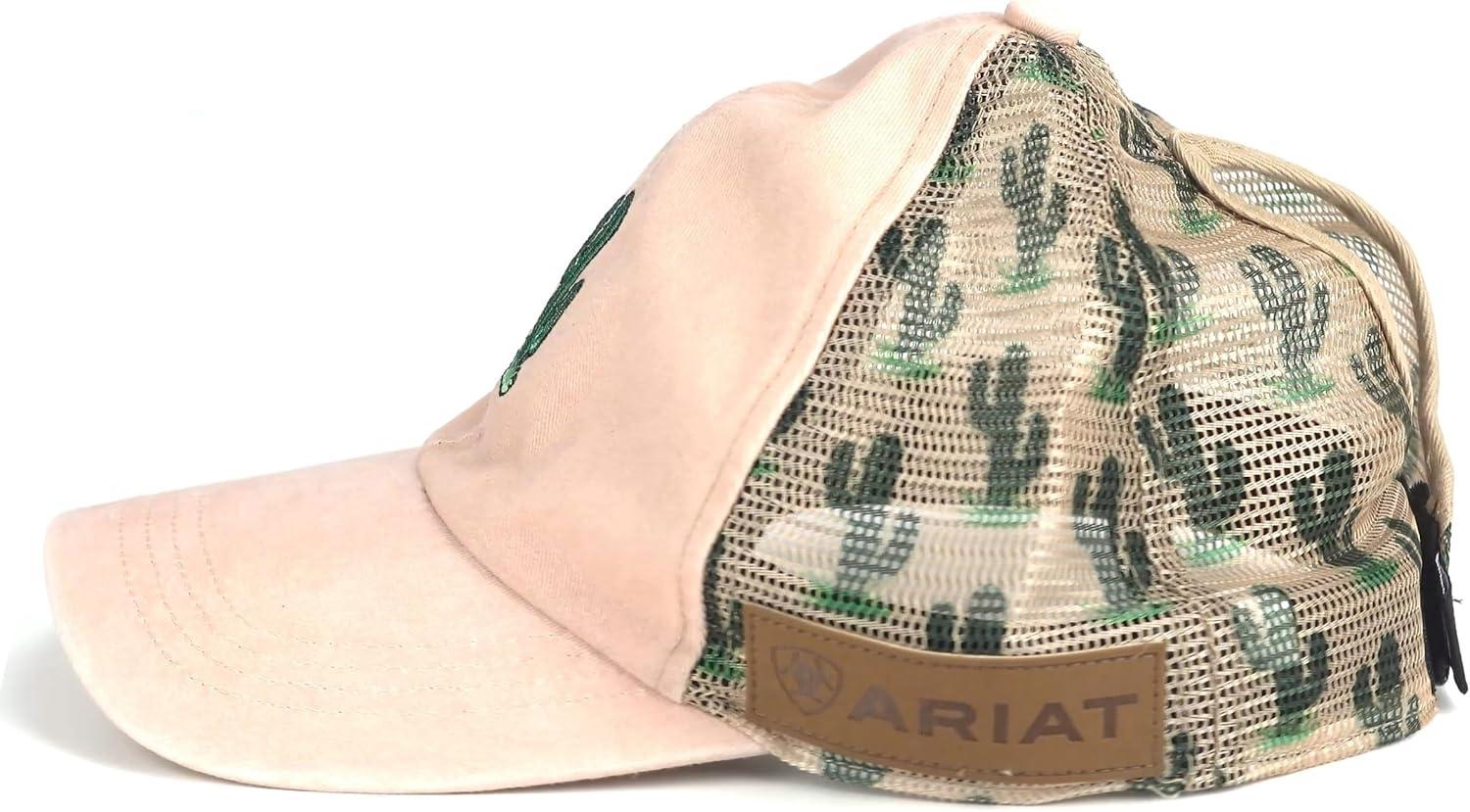 Ariat Pink Embroidered cactus Mesh back with cactus print Ponytail hole Adjustable A300068030Ariat cap with green embroidered cactus patch featuring an adjustable closure and ponytail hole.