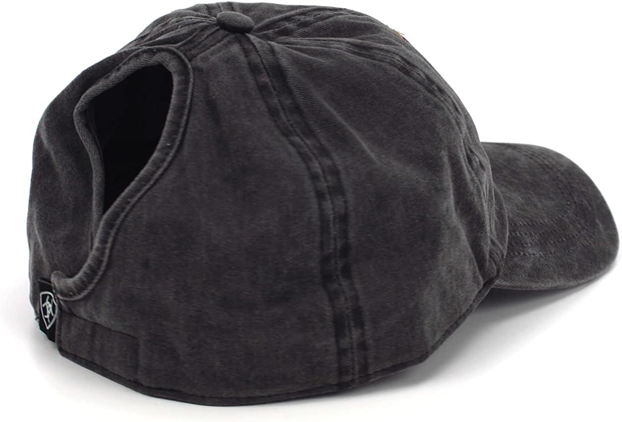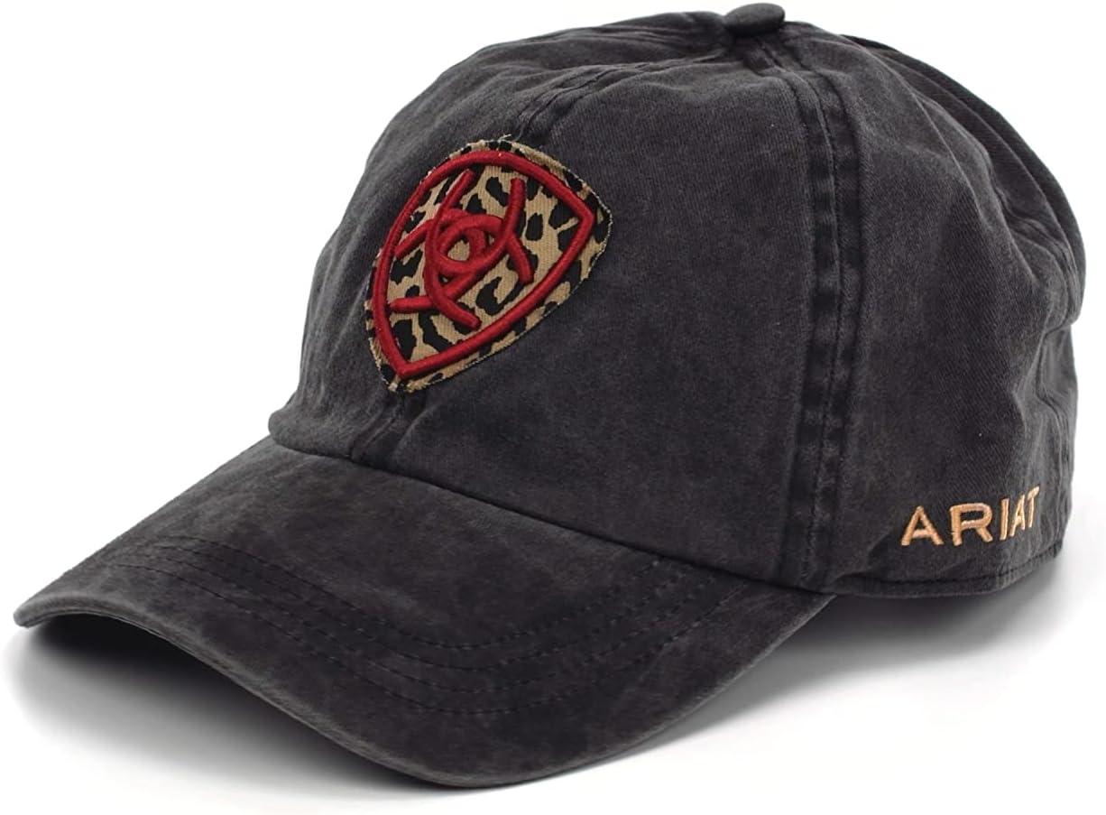 ARIAT Women’s Black Demin Cap with Leopard Embroidered Shield and Hook and Loop Ponytail Closure