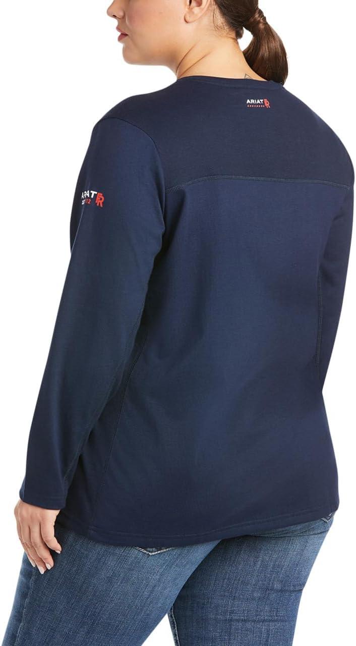 FR AC TopAriat is proud to offer a line of flame-resistant workwear designed specifically for women. Our FR knit shirts are constructed with the ultimate comfort, technology and durability in mind. FR fabric is soft against the skin and the taped inside back seam eliminates irritation. CAT 2 ATPV 8.9 cal/cm2 NFPA 70E NFPA 2112 6.75 oz FR jersey Greater Arm Mobility seam construction for maximum range of motion Moisture Movement Technologyâ„ wicks moisture away from the skin VentTEKâ„ technology features body mapping to enable air flow and regulate body temperature Crafted with fabric made in the USA V-neck Rib knit collar and cuff Taped inside back seam 100% cotton.