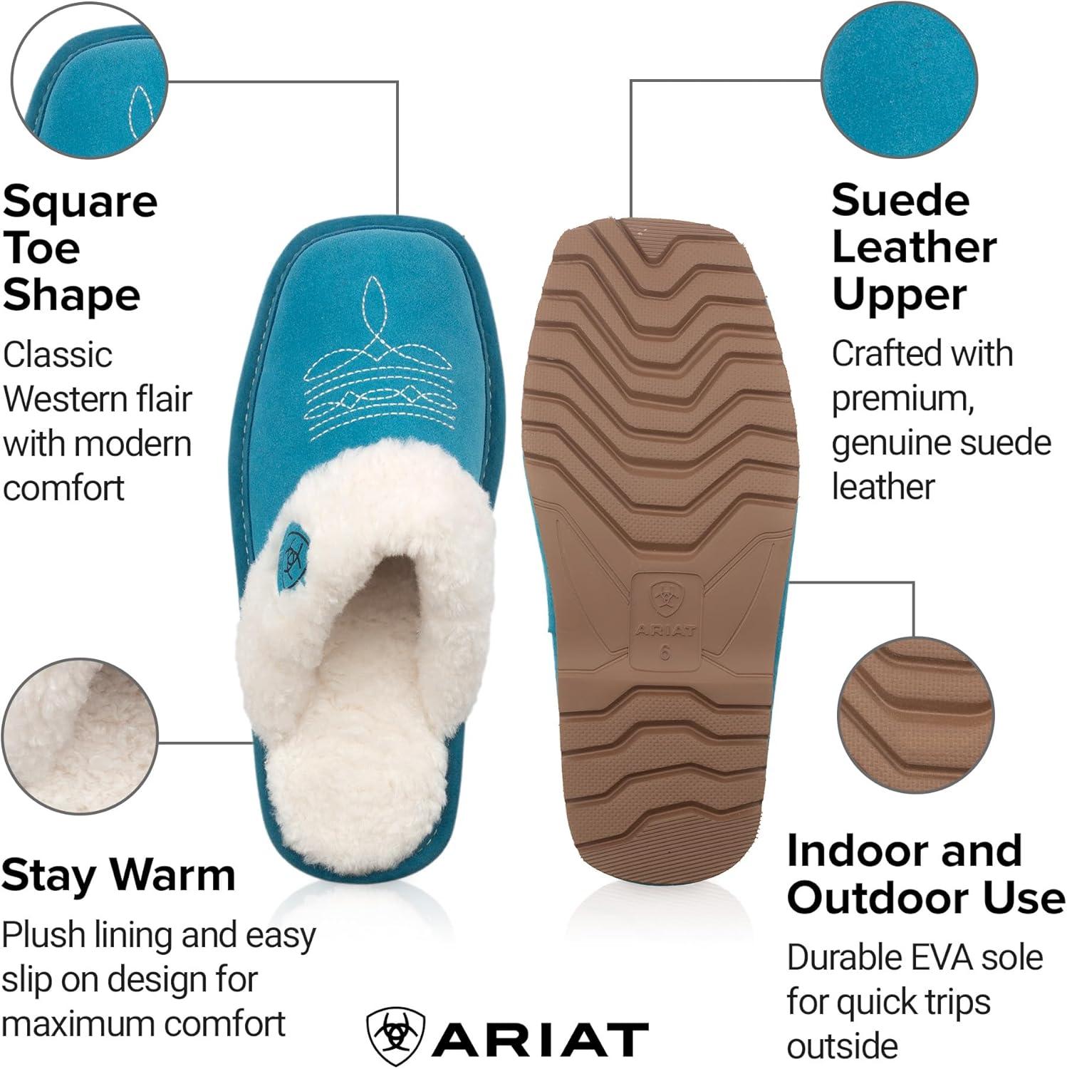 ARIAT Women’s Jackie Square Toe Warm Soft Genuine Suede Leather Indoor Outdoor Slippers with Plush Collar(Bright Turquoise)