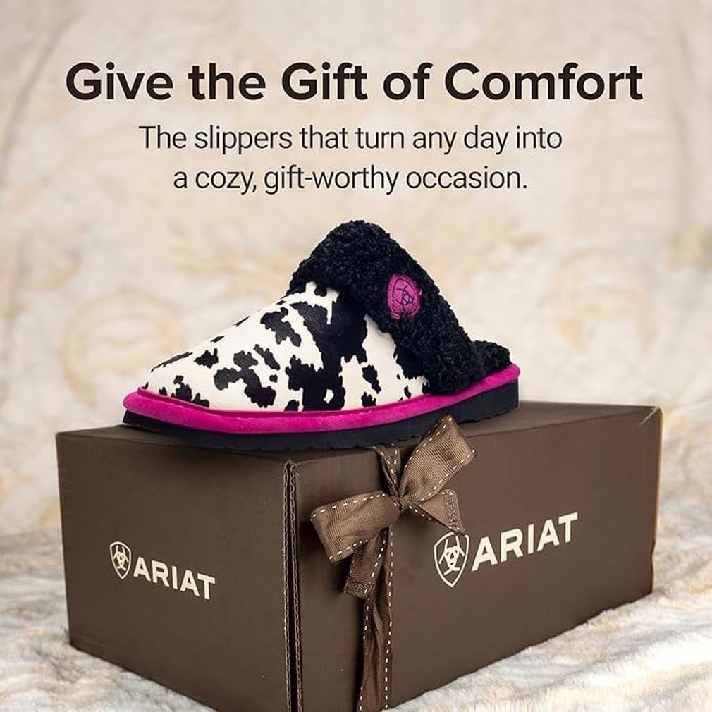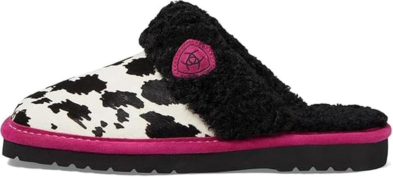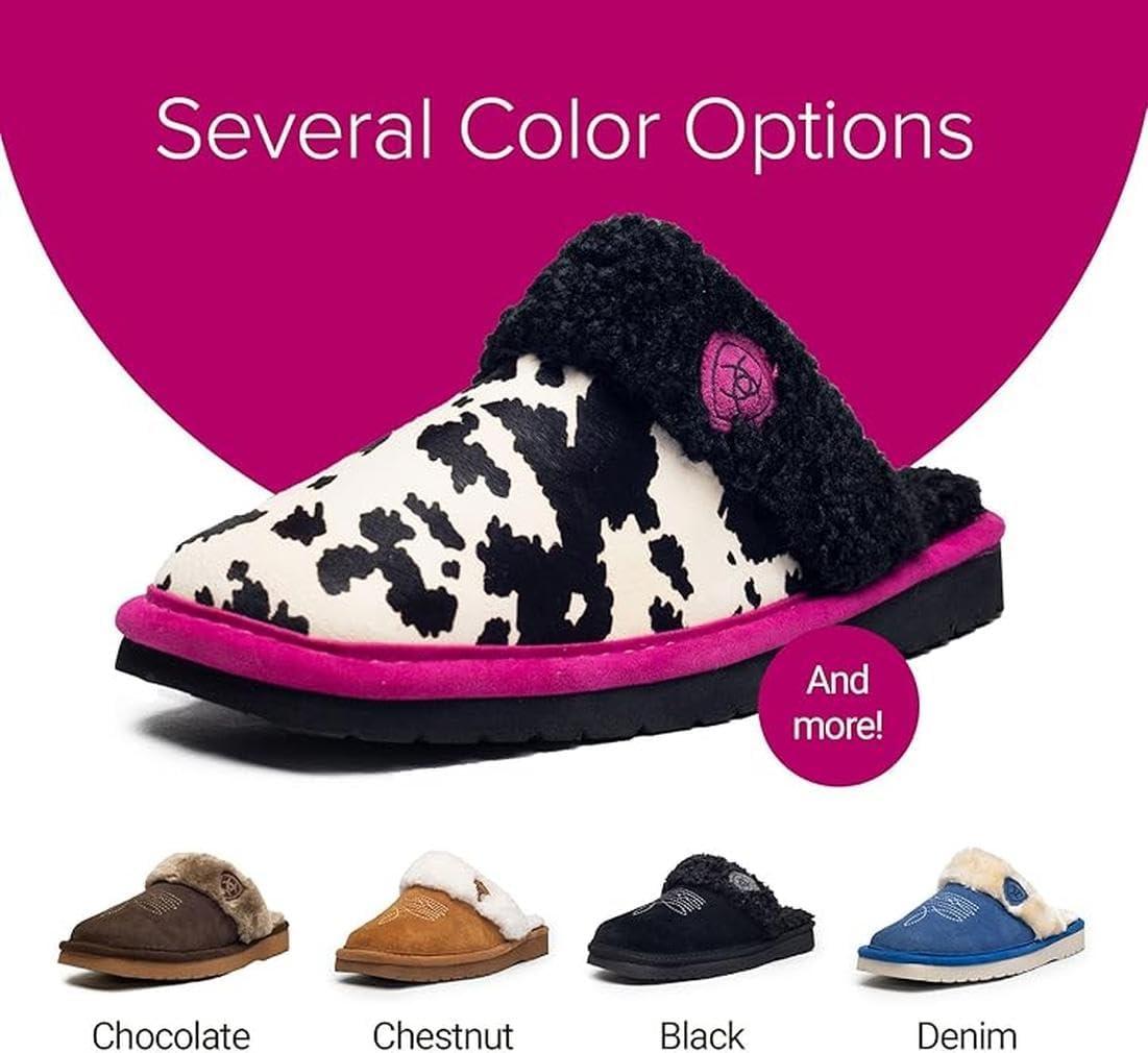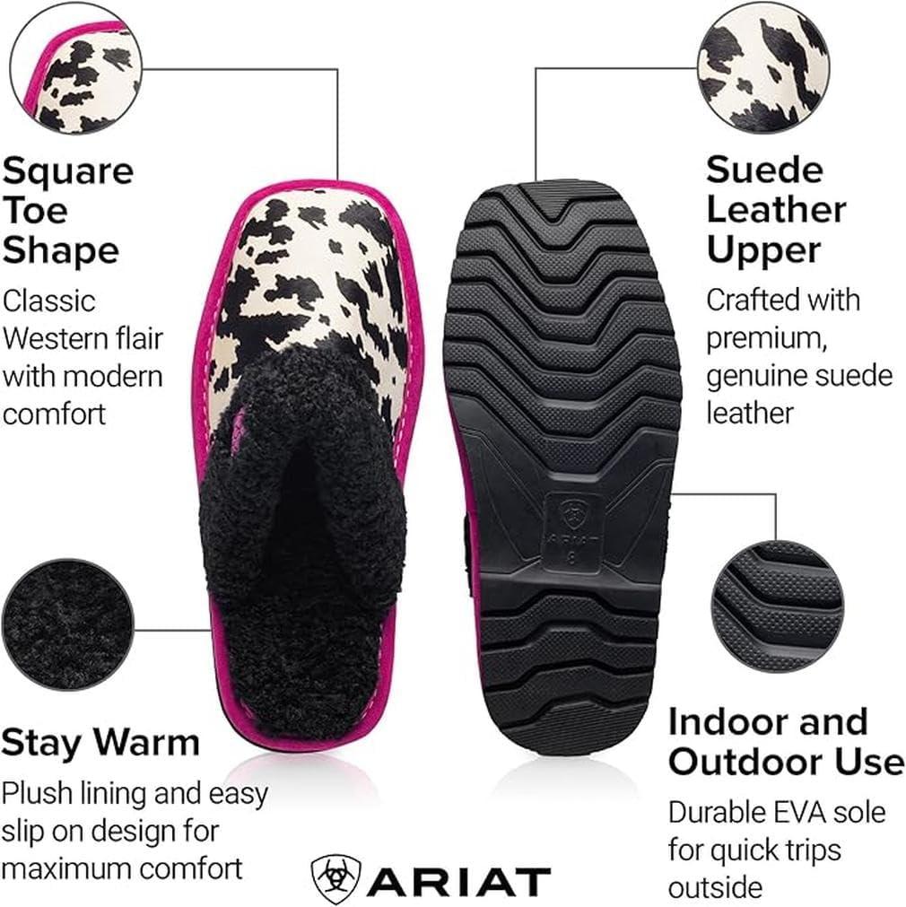 ARIAT Women’s Jackie Square Toe Warm Soft Genuine Suede Leather Indoor Outdoor Slippers with Plush Collar(Pink Pony)