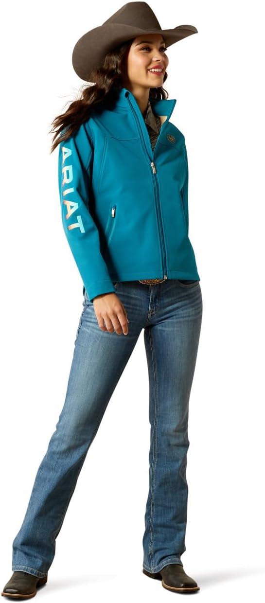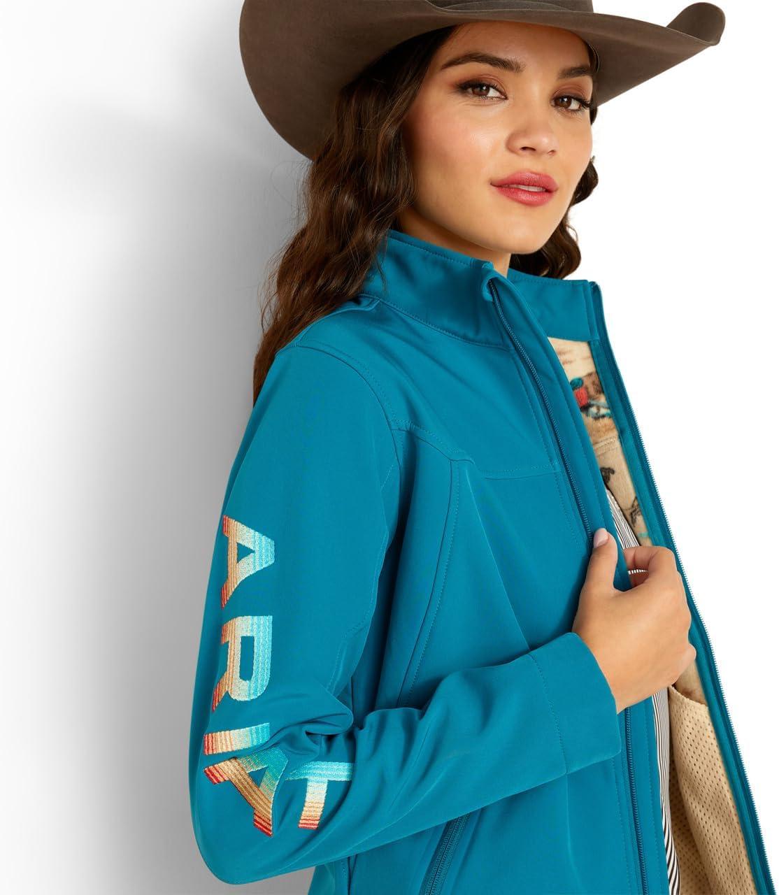ARIAT Women’s New Team Softshell Jacket, Black(Ocean Depths/Retro Ranch Print)