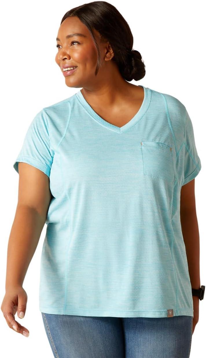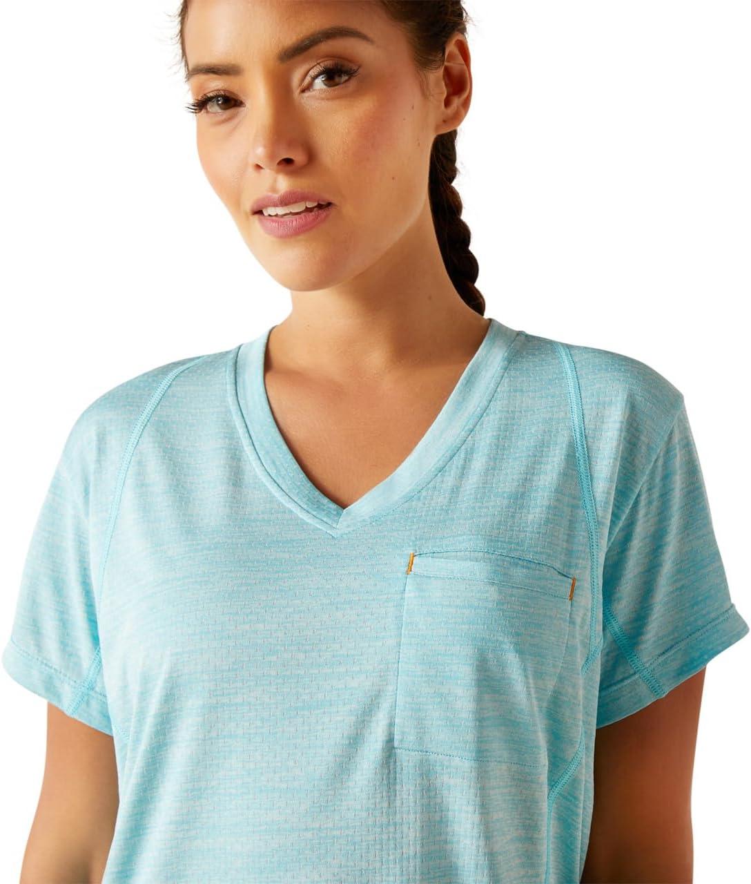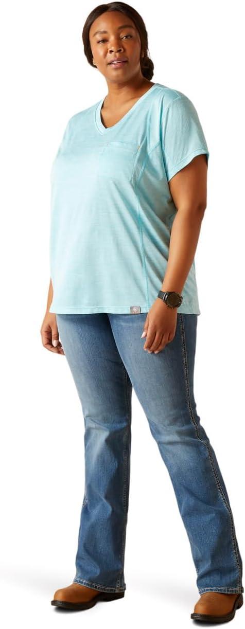 ARIAT Womens Rebar Cotton Strong V-Neck Top(Arctic Blue)