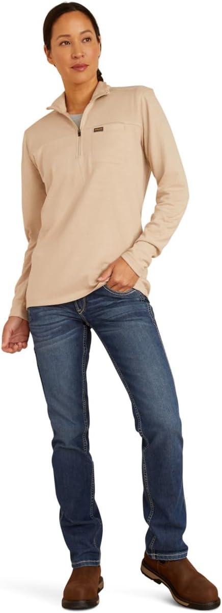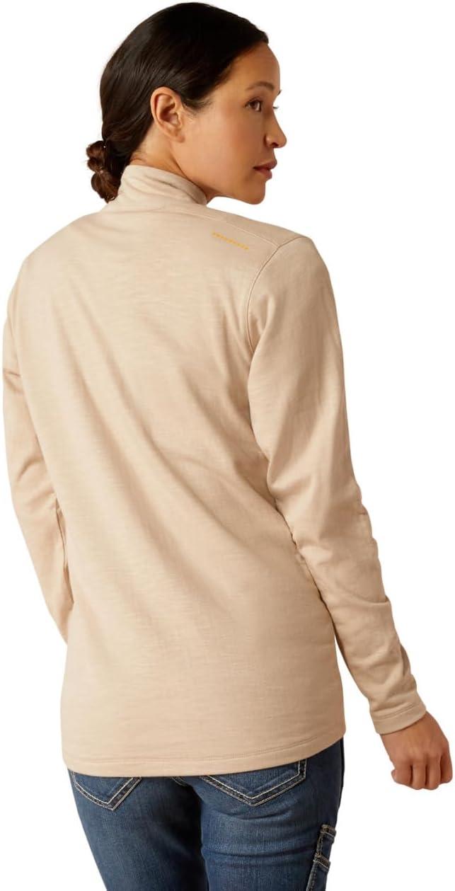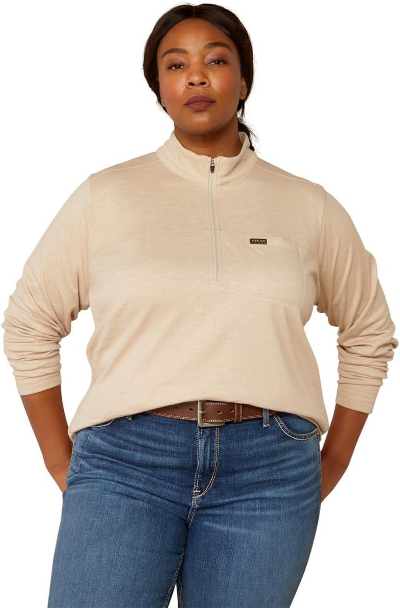 ARIAT Womens Rebar Gridwork Baselayer 1/4 Zip T-Shirt(Oatmeal Heather)