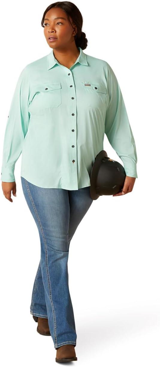 ARIAT Womens Rebar Made Tough Durastretch Work Shirt(Pool Blue Heather)