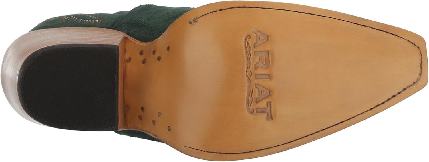Our beautifully handcrafted, full-grain leather cowgirl boots feature a combination of traditional style and modern comfort. Made with ATS technology for stability and all-day comfort, you can effortlessly slip them on and off, thanks to the cutout side design. The 4-row stitch pattern, the high block heel, and the ankle-length shaft add a classic country vibe to them along with practicality, making them an excellent choice for a night out on the town or a day of errands. To create an authentic cowgirl look, you can pair these western ankle booties with relaxed jeans and a t-shirt or use layering by adding a formal blazer over your T-shirt. Moreover, they have the durable Goodyear welt and can be resoled if the old outsole wears out.