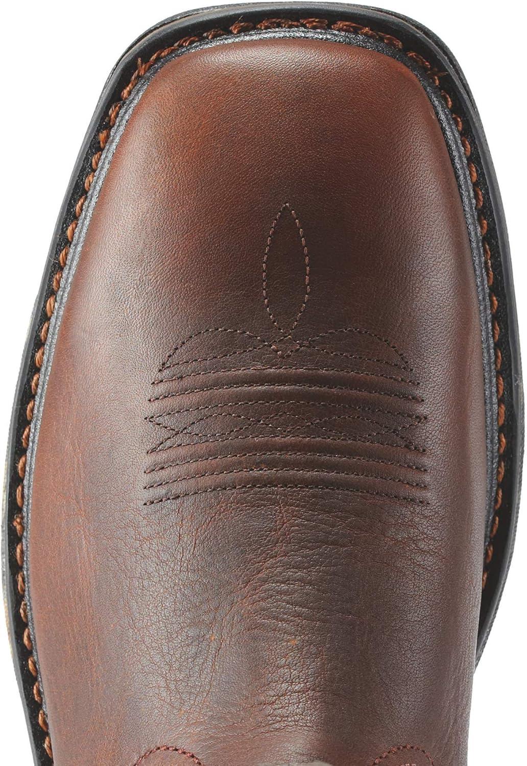 Embrace your inner cowboy with Ariat’s Groundbreaker Boot for Men. This easy to wear work boot features multi-surface traction and protection, making it ideal for construction, warehouse, or farm and ranch work. Four Layer Rebound Technology offers a moisture-wicking liner, contoured cushioning, lightweight stabilizing shank, and an oil and slip resistant outsole for durable footwear you can rely on.